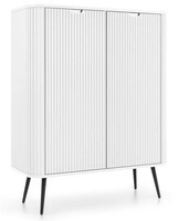 Komoda wysoka Loren dwudrzwiowa z ryflowanymi frontami w kolorze cashmere