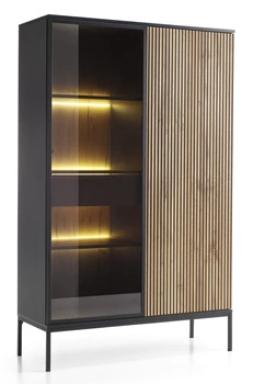 Witryna Lagos 166cm wysokość 2D1SZ z metalowymi nóżkami w kolorze Czarnym + LED