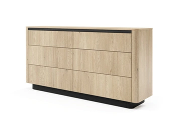 Komoda TORRO dąb cremona 163 cm czarna 6 szuflad zaoblona push to open
