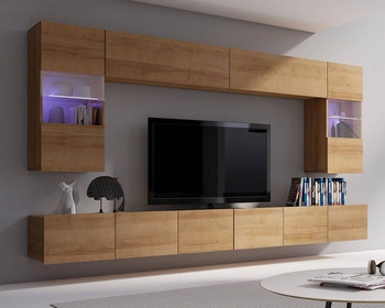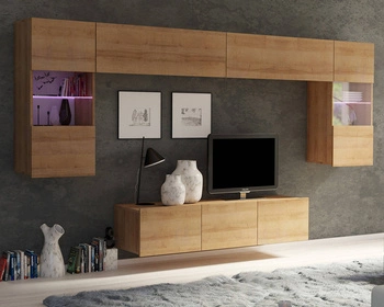 Meblościanka Vento 180 cm – biały mat i dąb artisan, nowoczesny zestaw mebli RTV do salonu