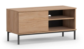 Szafka RTV Kolder 100 cm w kolorze dąb artisan i z ryflowanymi frontami