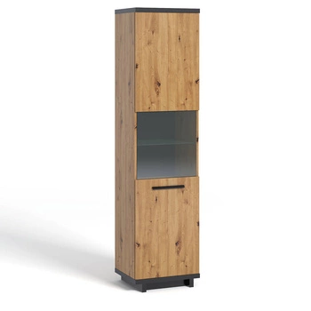 Witryna Wysoka LUMI 92 cm Dąb Dunin – Ryflowane Szkło, Czarne Uchwyty, Oświetlenie LED