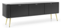 Szafka RTV Porto 168cm w kolorze białym trzydrzwiowa z ryflowanymi frontami i czarnymi nogami