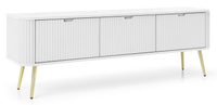 Szafka RTV Porto 168cm w kolorze białym trzydrzwiowa z ryflowanymi frontami i czarnymi nogami