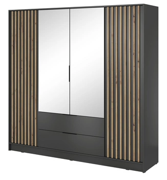 Szafa Stilo w kolorze grafitowym czterodrzwiowa z lustrem i lamelami na froncie