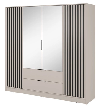Szafa Stilo w kolorze cashmere czterodrzwiowa z lustrem i lamelami na froncie