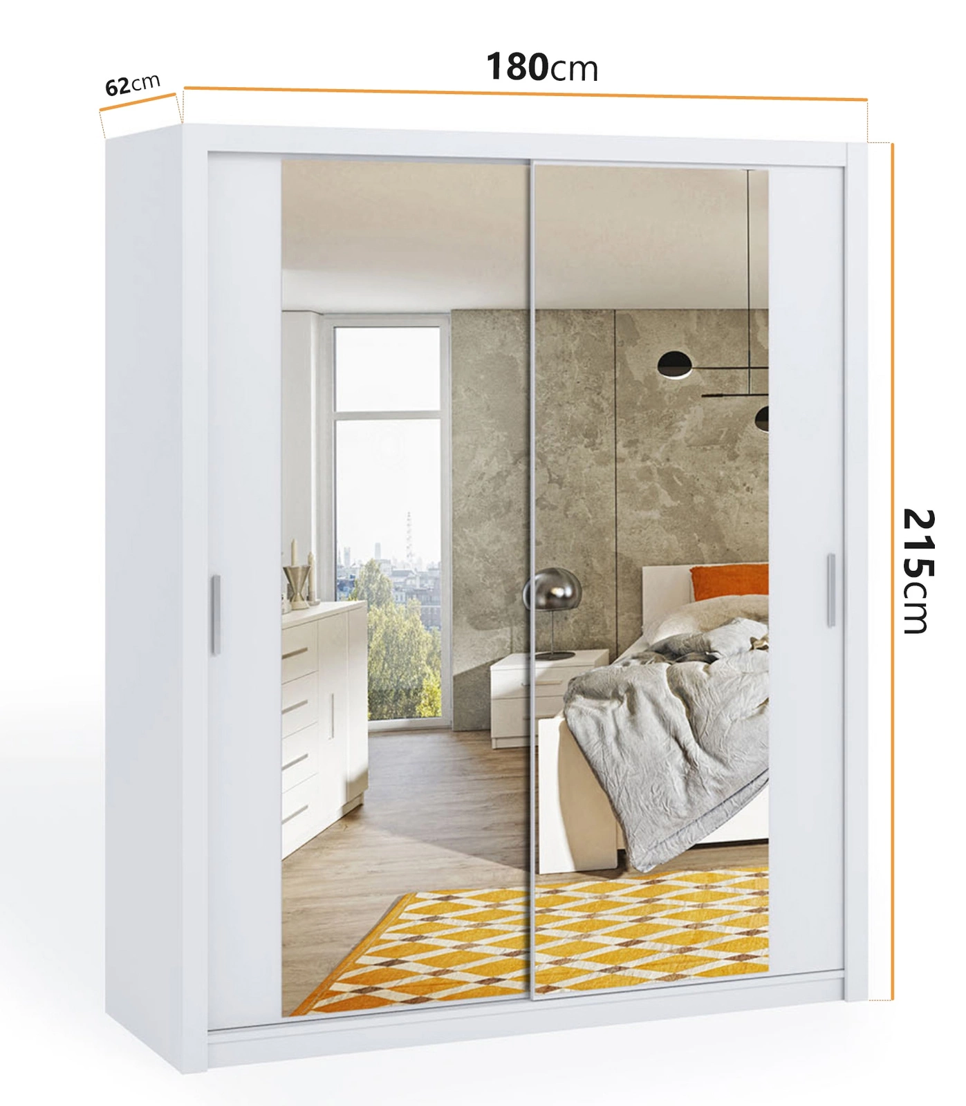 Biała szafa przesuwna Tamiza 180 cm z lustrem
