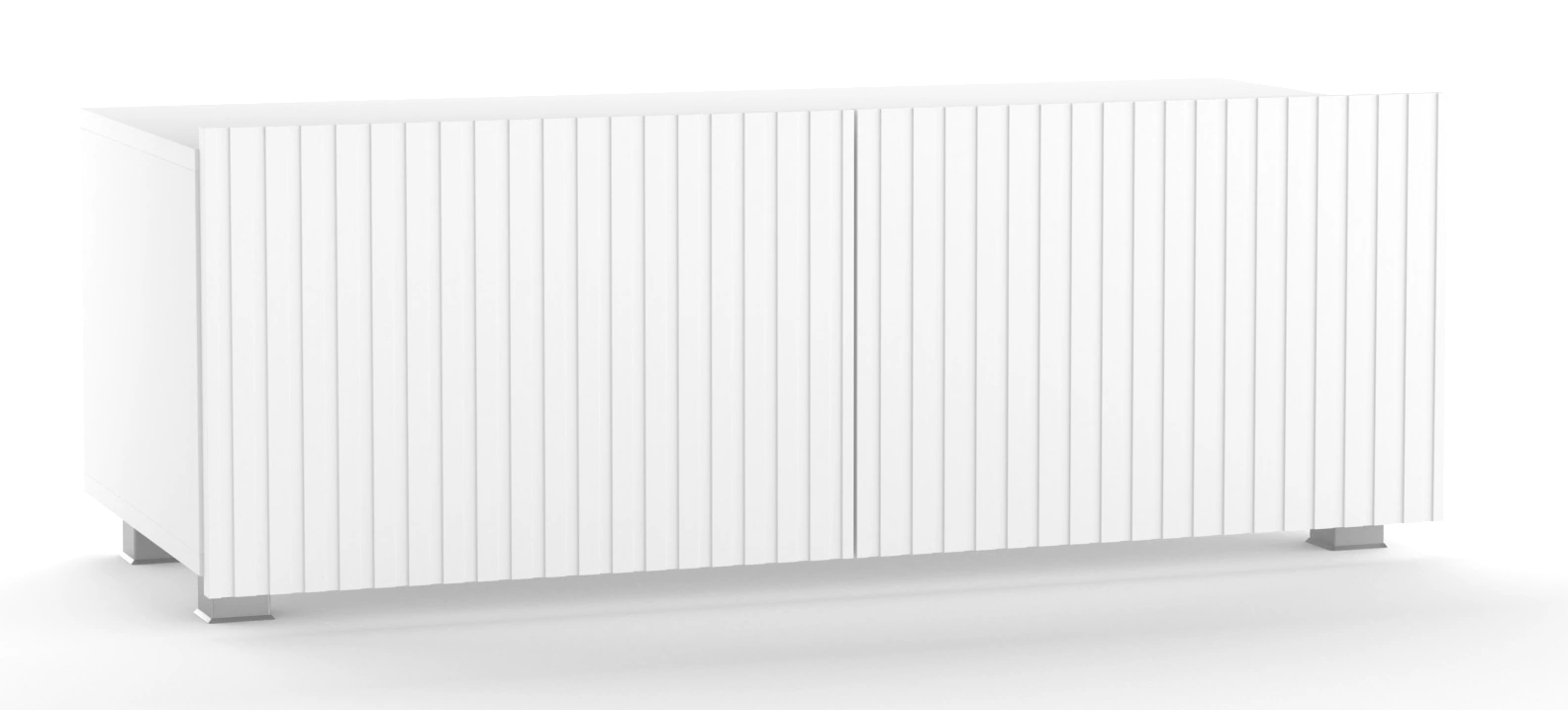 Biała szafka RTV Kolder 100 cm z ryflowanymi frontami