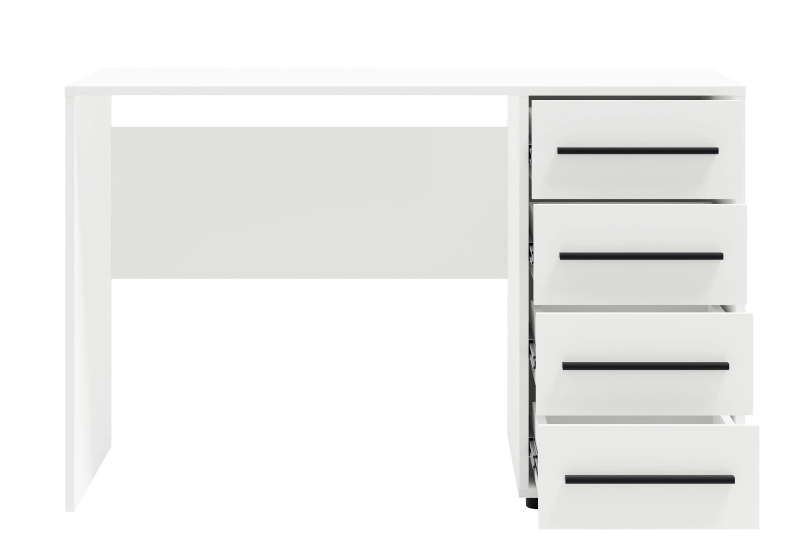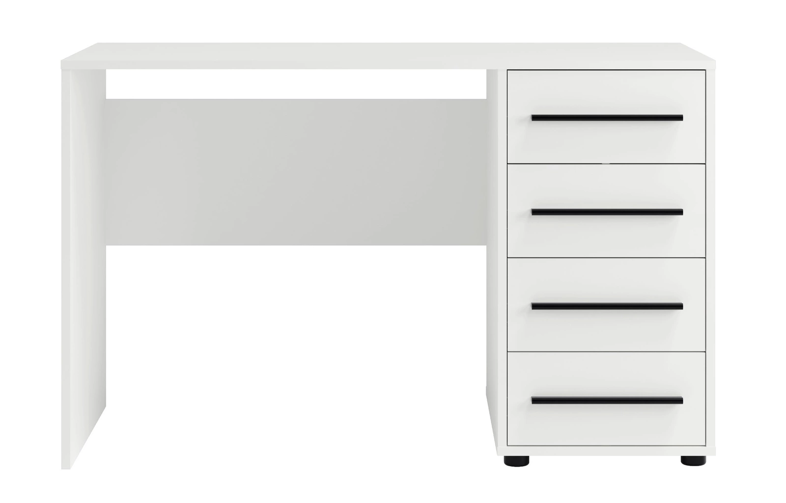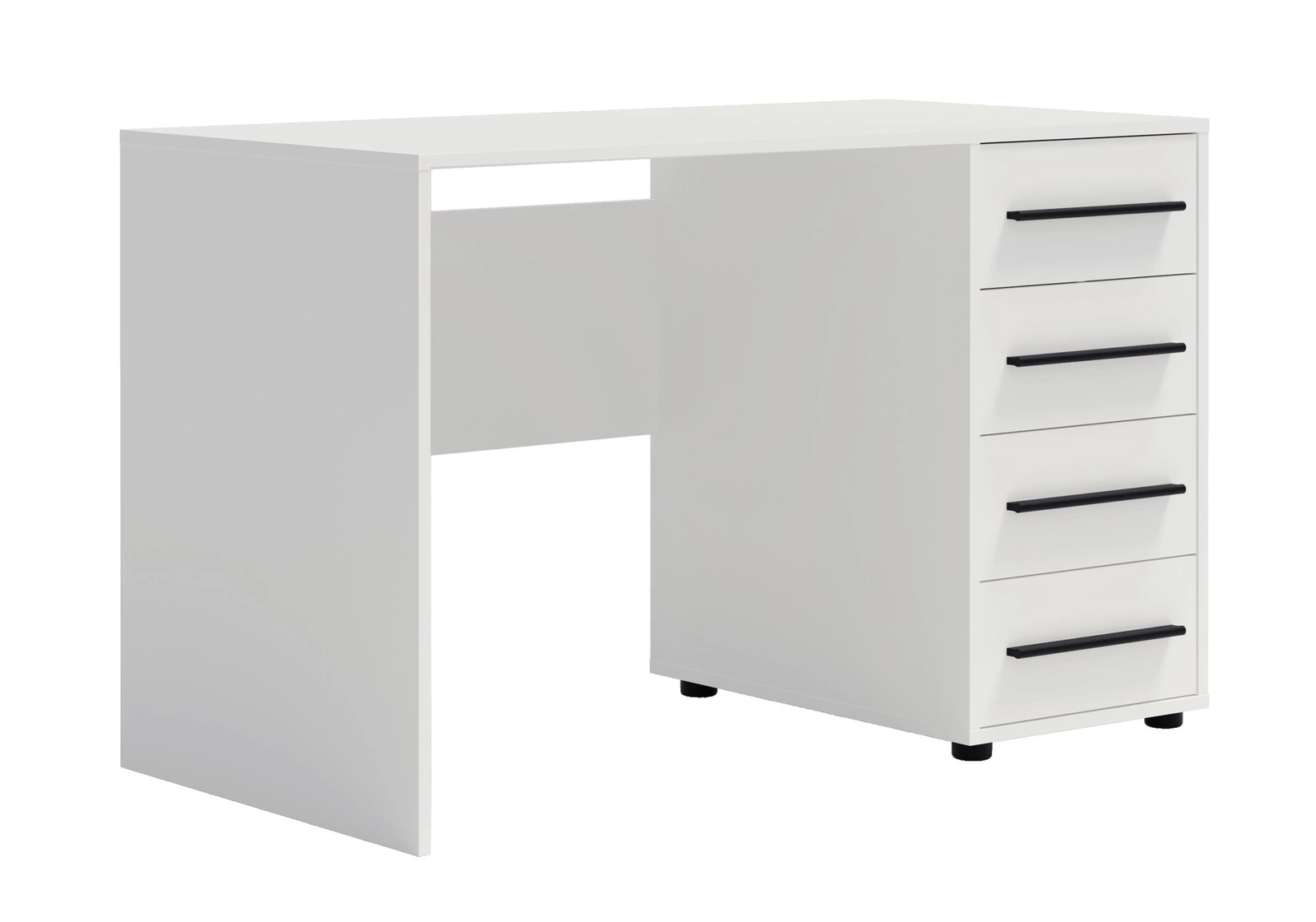 - Biurko Modena w kolorze białym z czterema szufladami. Funkcjonalne, stabilne i eleganckie – idealne do biura, pokoju młodzieżowego i gabinetu.a pojemne szuflady pomieszczą potrzebne akcesoria