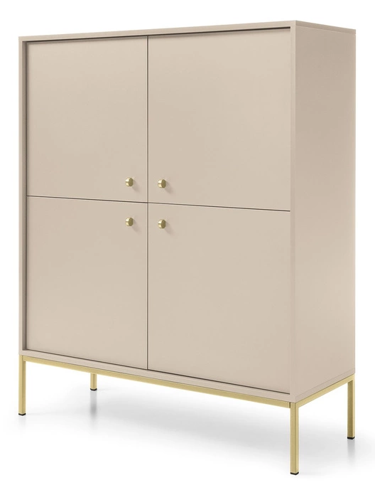 - Wysoka komoda Bari w eleganckim beżowym kolorze to esencja luksusu i funkcjonalności w jednym. Z czterema drzwiami, ta komoda oferuje obfitość przestrzeni do przechowywania, przy zachowaniu wyjątkowego designu.