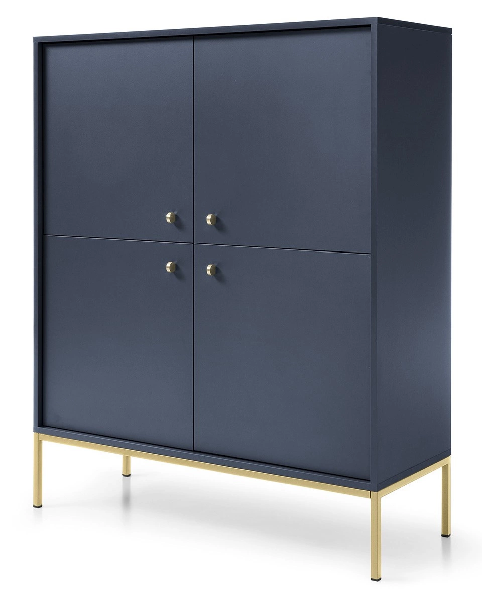 Czterodrzwiowa komoda Bari K104 w kolorze granatowym i ze złotymi nóżkami