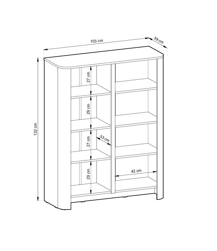 Za czterema drzwiami ukryto praktyczne, przestronne półki, które pomogą uporządkować zarówno odzież, jak i domowe drobiazgi, dokumenty czy zastawę stołową. To rozwiązanie, które świetnie sprawdzi się zarówno w salonie, jadalni, jak i sypialni.