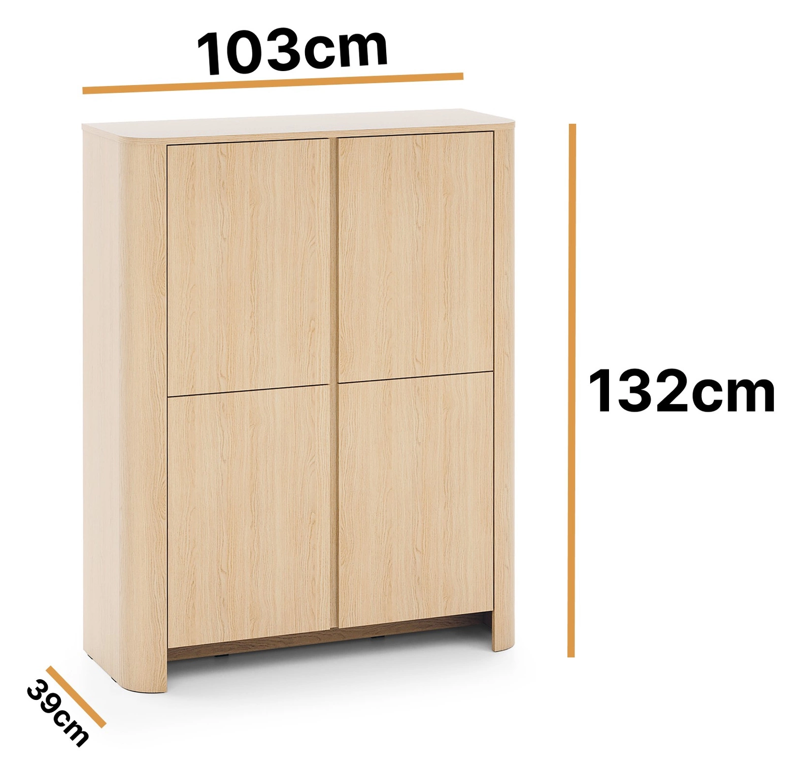 Za czterema drzwiami ukryto praktyczne, przestronne półki, które pomogą uporządkować zarówno odzież, jak i domowe drobiazgi, dokumenty czy zastawę stołową. To rozwiązanie, które świetnie sprawdzi się zarówno w salonie, jadalni, jak i sypialni.