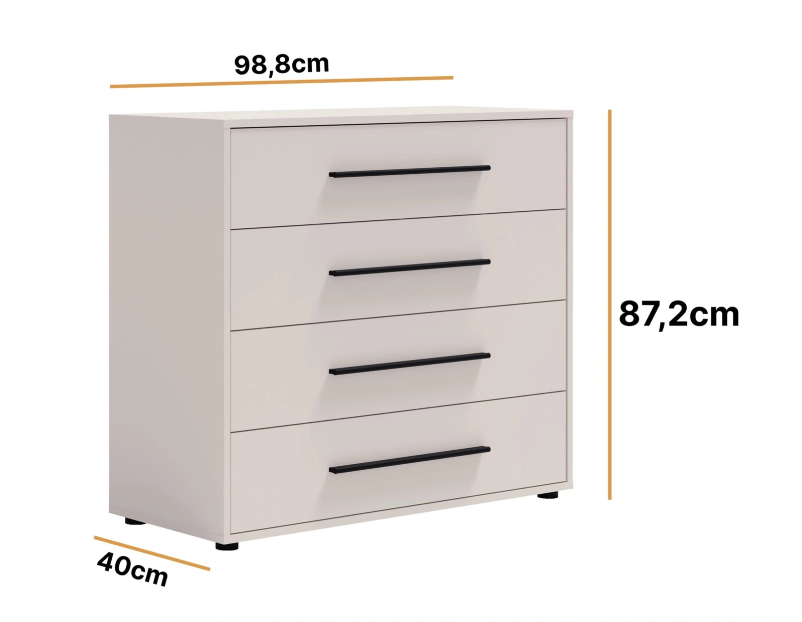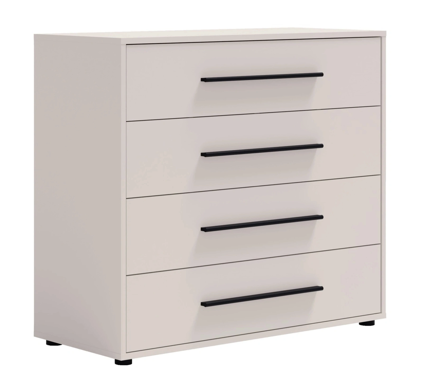 • Komoda Modena kaszmirz 4 pojemnymi szufladami. Funkcjonalna i nowoczesna – idealna do sypialni, salonu czy pokoju młodzieżowego.