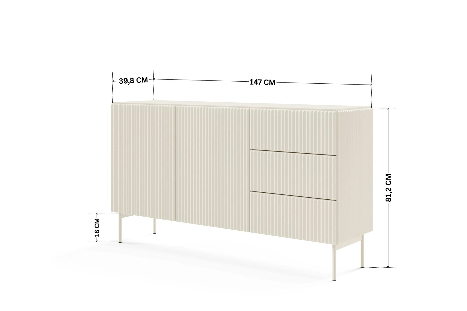 Komoda MUTI kaszmir 147 cm 3 szuflady ryflowana push to open