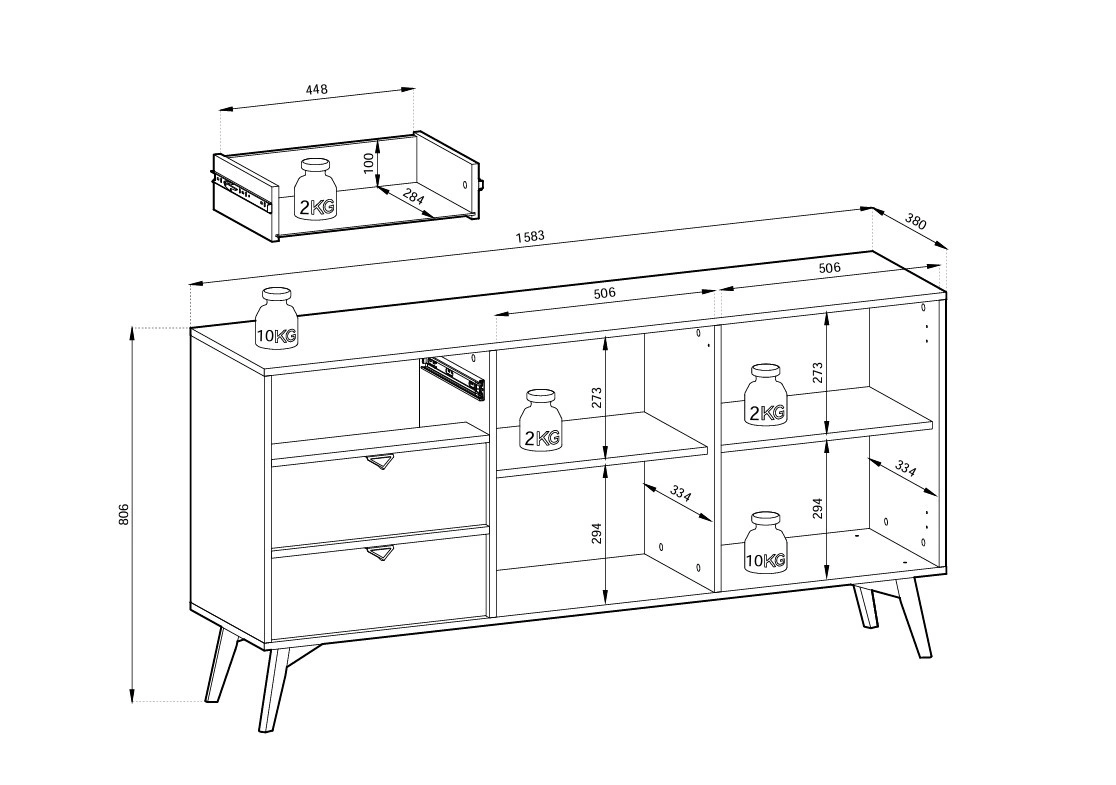- Korpus oraz front wykonane z płyty laminowanej 16 mm