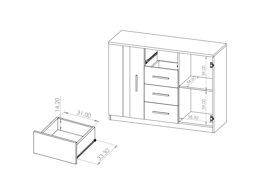 Komoda Tamiza K2D4SZ 120 cm dąb monastery