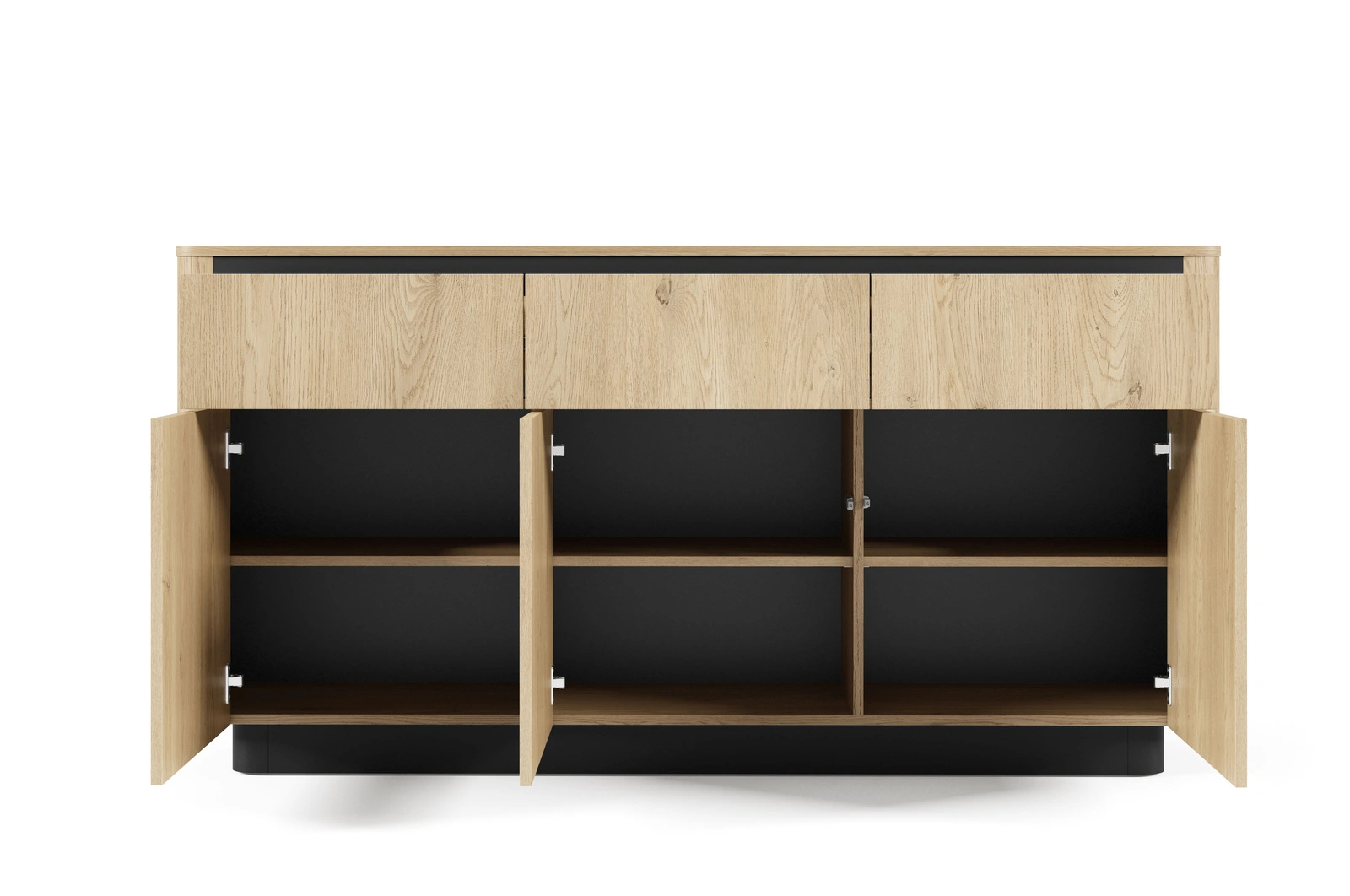 Komoda TORRO dąb cremona 163 cm czarna 3 szuflady zaoblona push to open