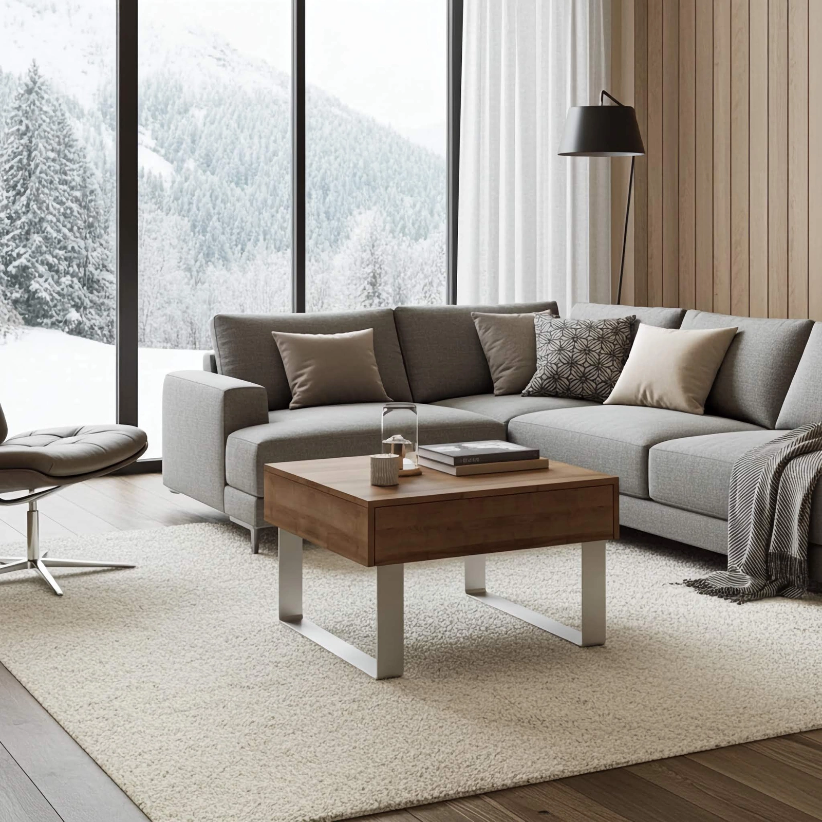 - Ława Montreal została zaprojektowana z myślą o praktyczności. Dwie szuflady pozwolą przechować czasopisma lub inne akcesoria, aby zawsze mieć je pod ręką. Dzięki zastosowaniu metalowych nóg stolik kawowy Montreal to mebel nowoczesny i niezwykle solidny.