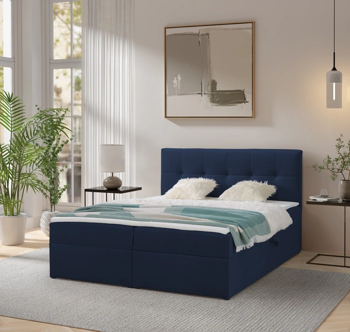 Poznaj elegancję i funkcjonalność w jednym – kontynentalne łóżko Toronto w ekskluzywnej, welurowej tkaninie Amor Velvet 4314 w kolorze granatowym to propozycja dla tych, którzy cenią sobie komfort, styl i praktyczne rozwiązania. Idealne do przestronnej sypialni w stylu nowoczesnym lub skandynawskim, stanowi prawdziwy luksus codziennego wypoczynku.