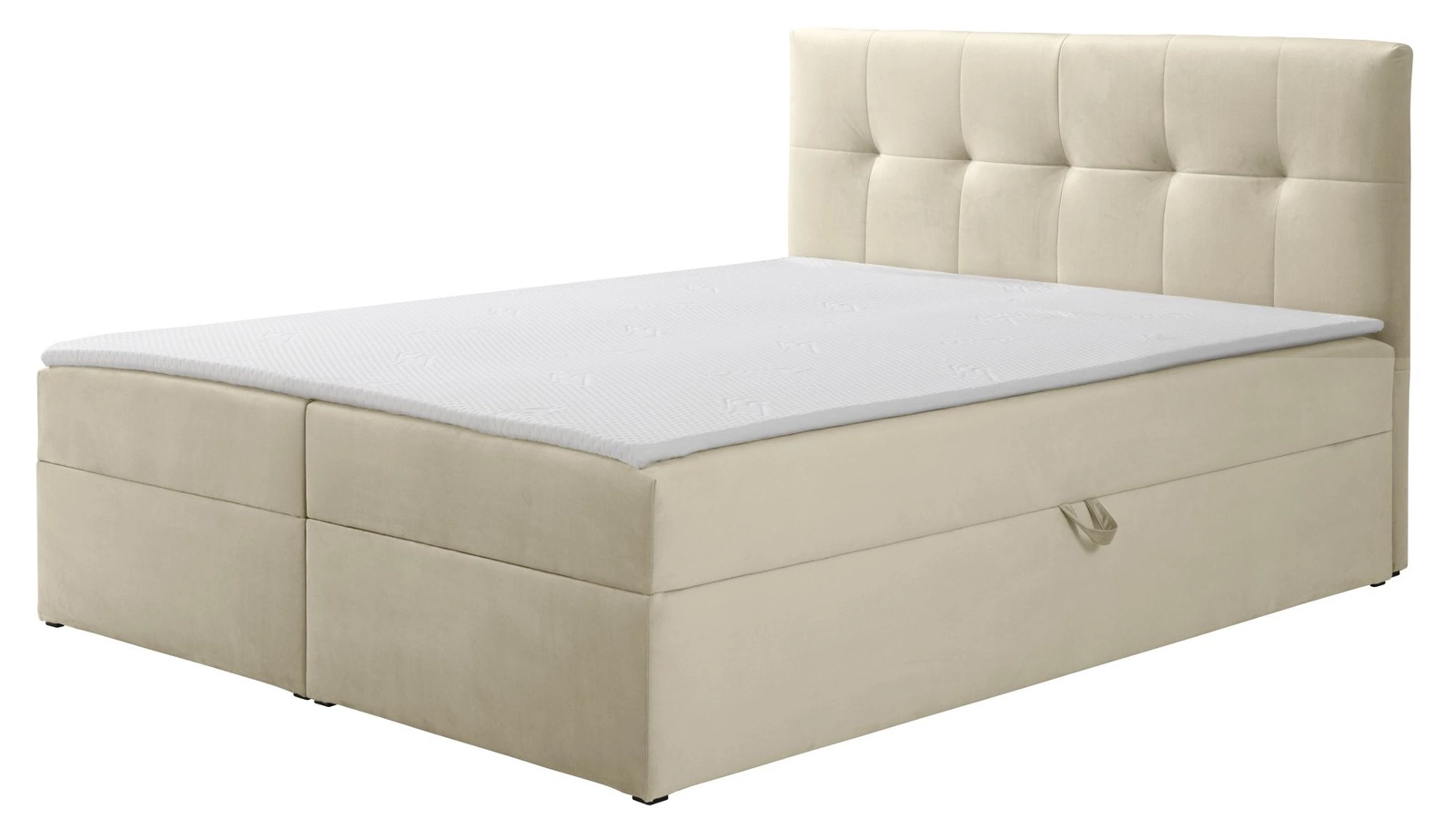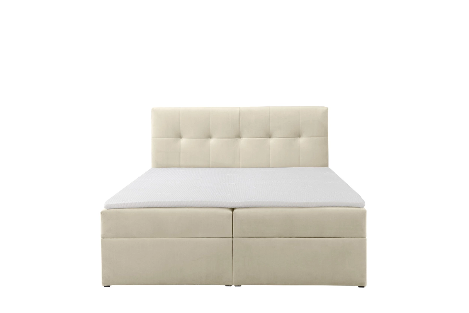 Łóżko kontynentalne Toronto 160×200 (Amor Velvet 4323 - Śmietankowy) z materacem bonell i topperem