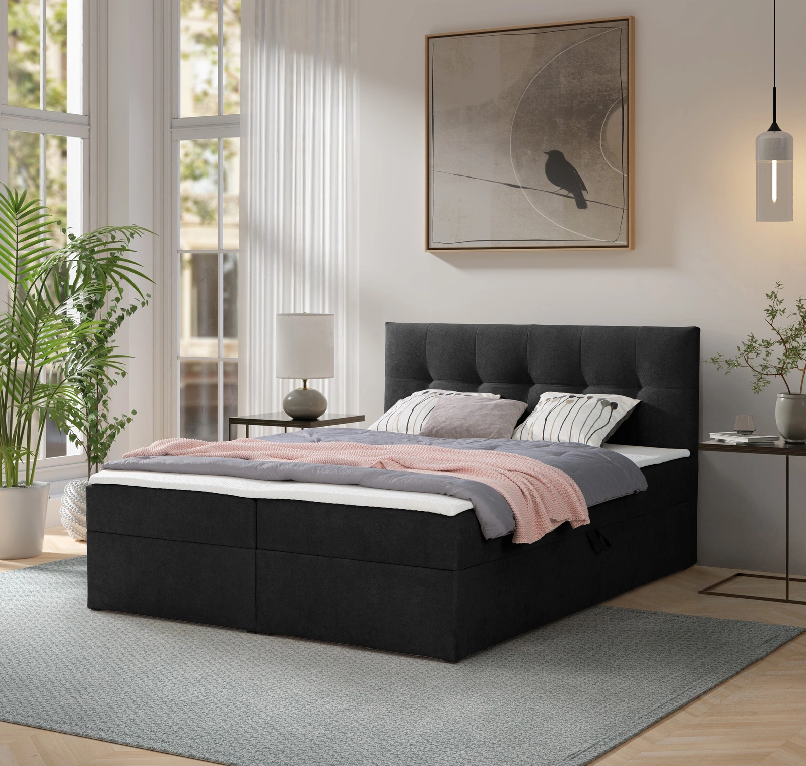Łóżko kontynentalne Toronto 160×200 (Gerra 75 - Czarny) z materacem bonell i topperem