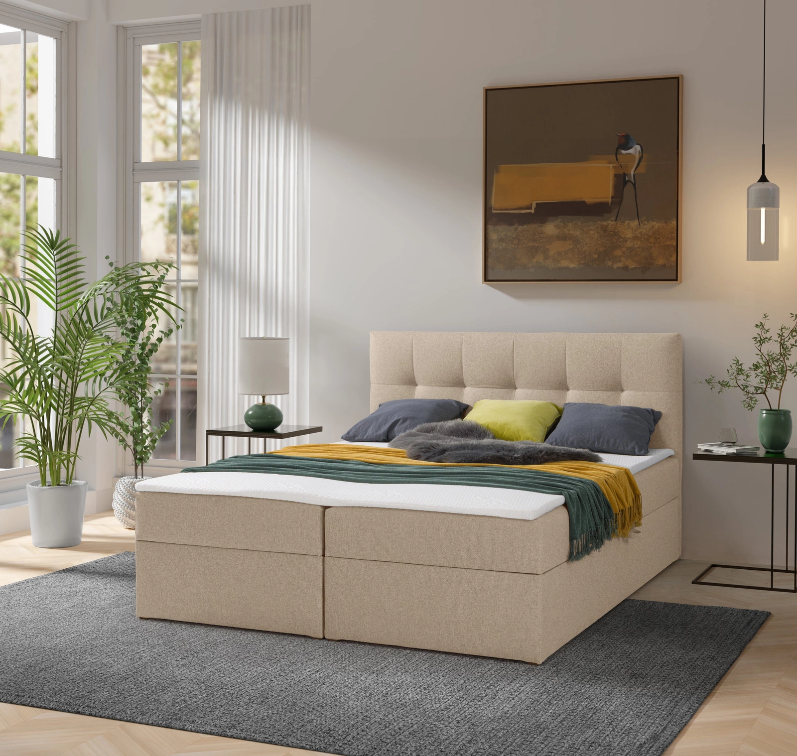 Łóżko kontynentalne Toronto 160×200 (Herbi 55 - Latte) z materacem bonell i topperem