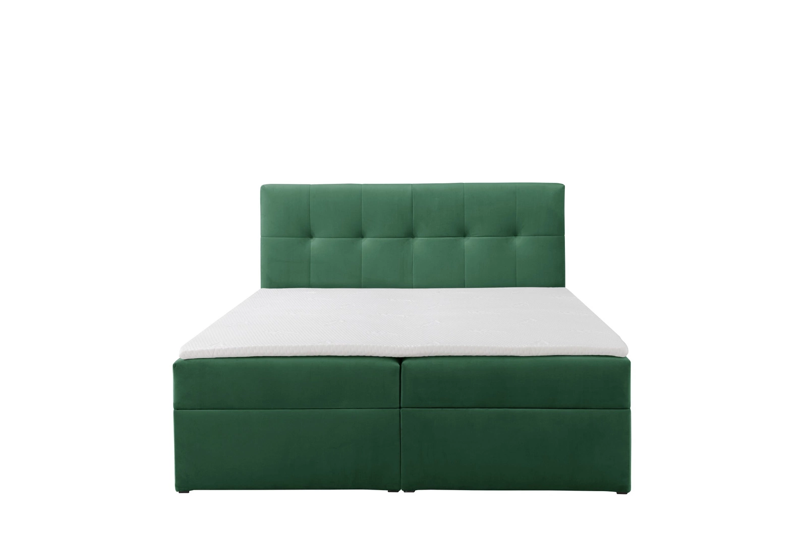 Łóżko kontynentalne Toronto 180×200 (Amor Velvet 4311 - Butelkowa zieleń) z materacem bonell i topperem
