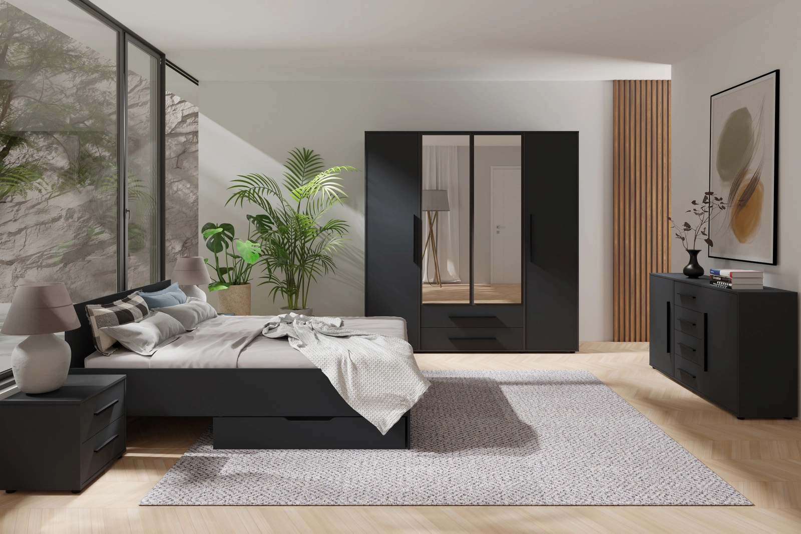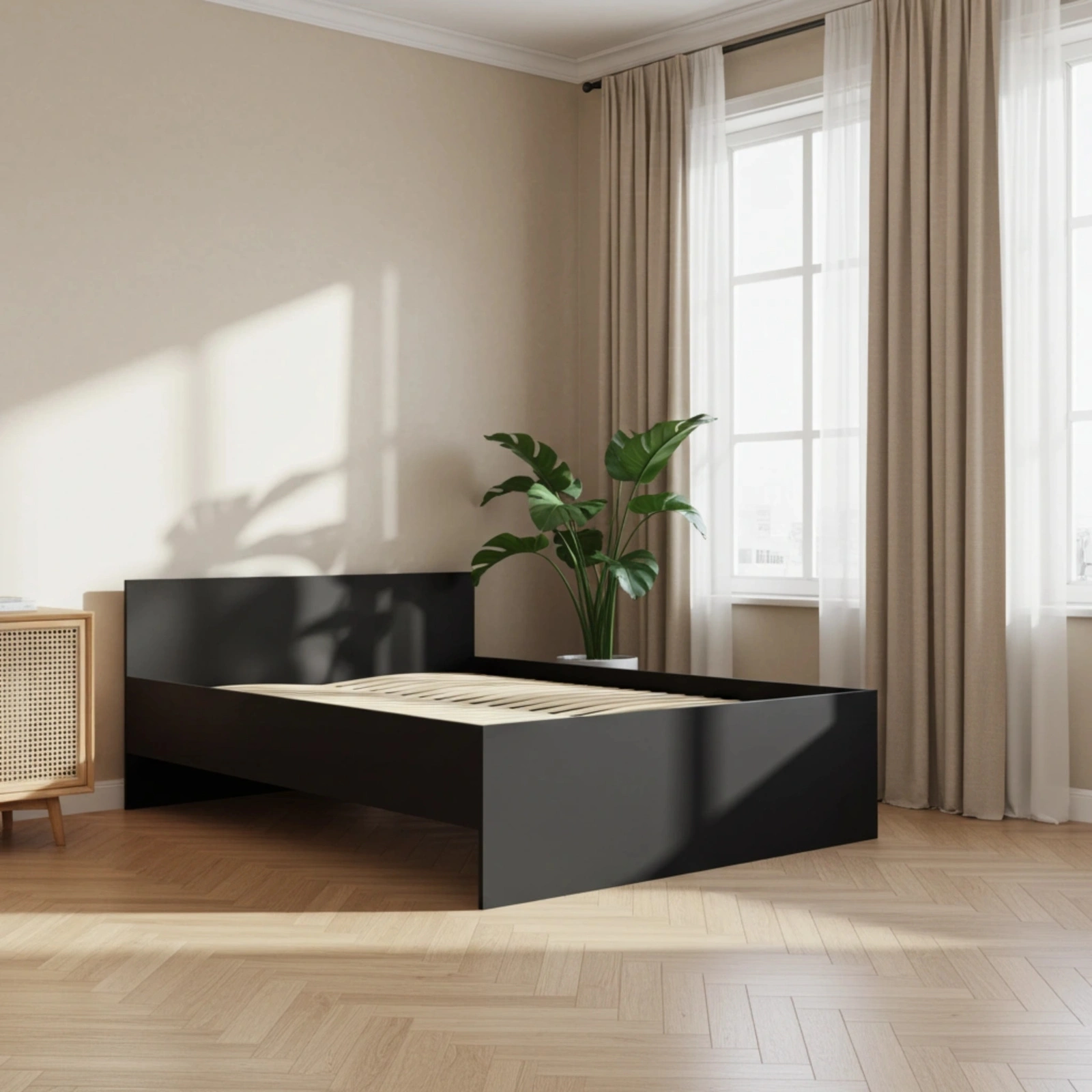 • Nowoczesne łóżko MODENA 160x200 cm w kolorze czarnym. Prosta forma, stelaż w zestawie, idealne do sypialni w minimalistycznym stylu.