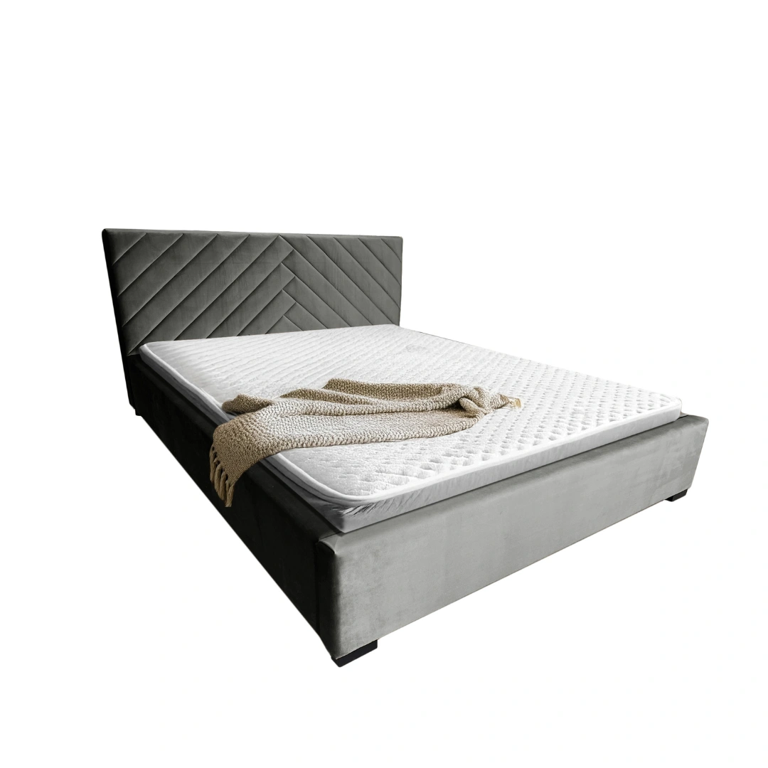 Łóżko tapicerowane TODI 140x200 szare welur pojemnik stelaż metalowy