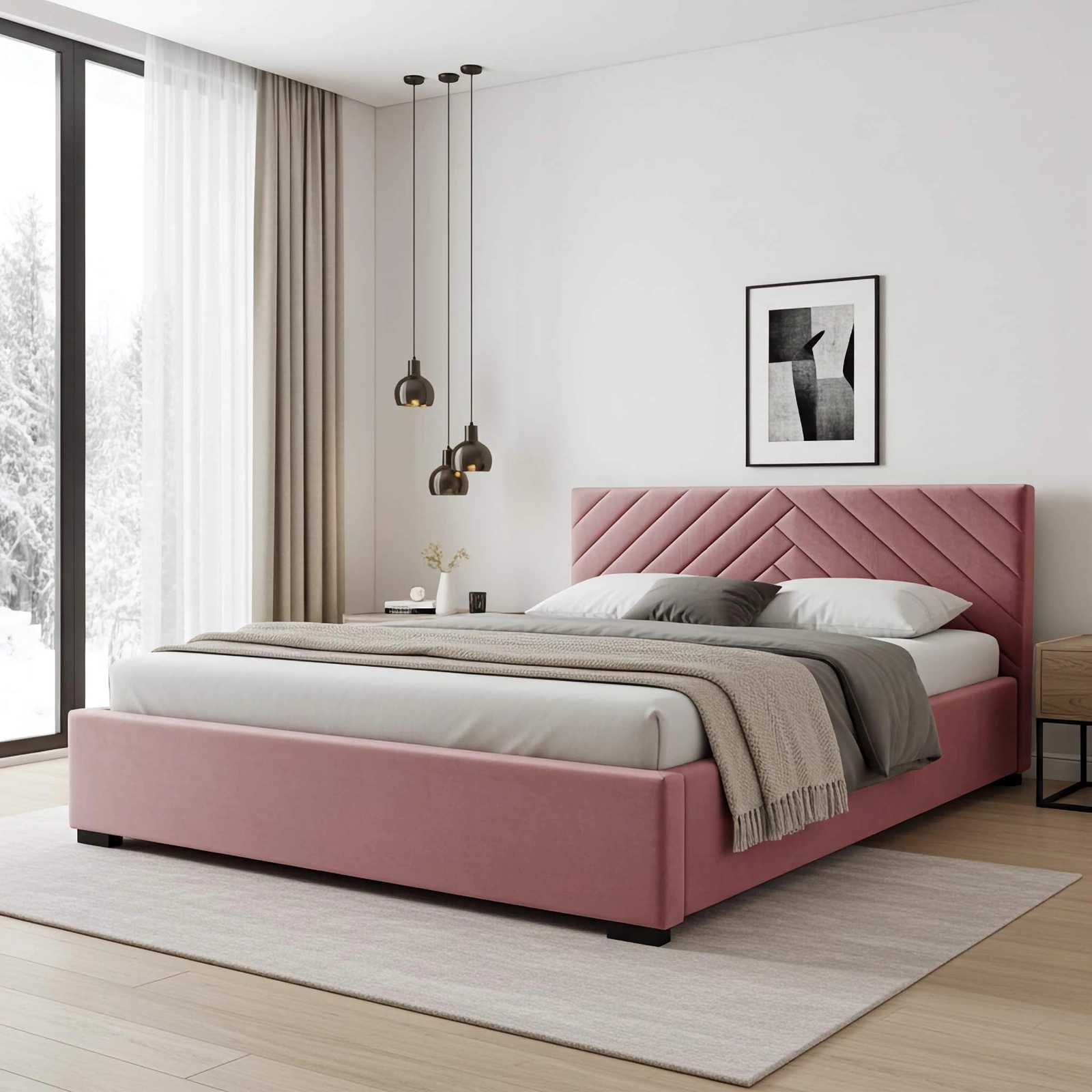 - Oczaruj swoje wnętrze łóżkiem TODI (90x200) w pudrowym różu. Idealne do sypialni w stylu glamour lub pokoju nastolatki. Miękka tkanina welurowa. Metalowy stelaż (18 listew) na podnośnikach gazowych, duży pojemnik na pościel.