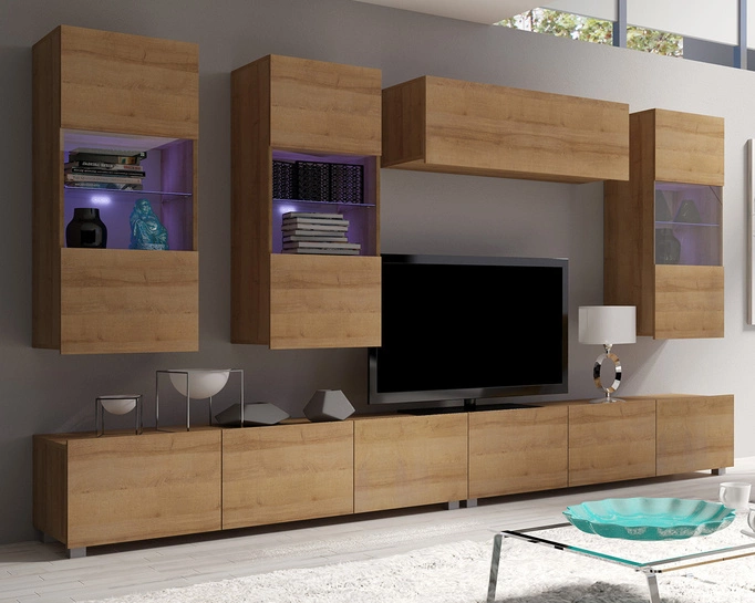 - Możliwość montażu szafek RTV jako meble wiszące lub stojące (nóżki w zestawie),