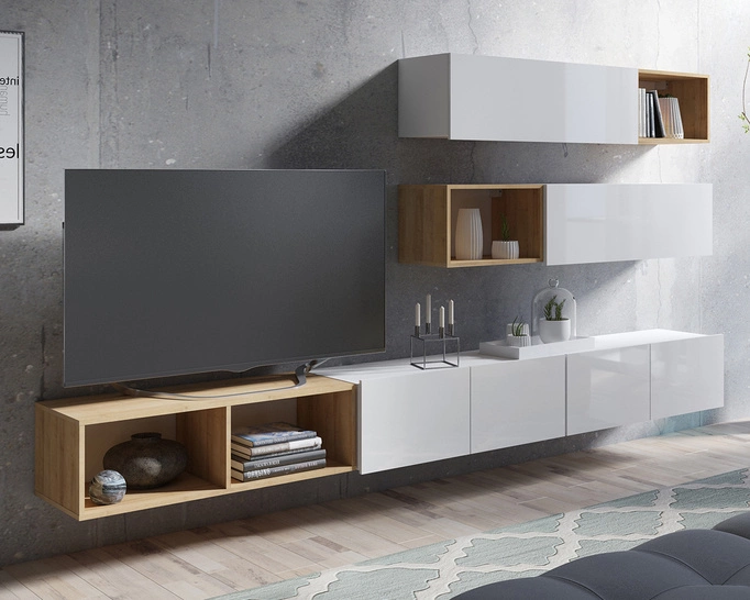 - Możliwość montażu stolików RTV i półki jako meble wiszące lub stojące (nóżki w zestawie),