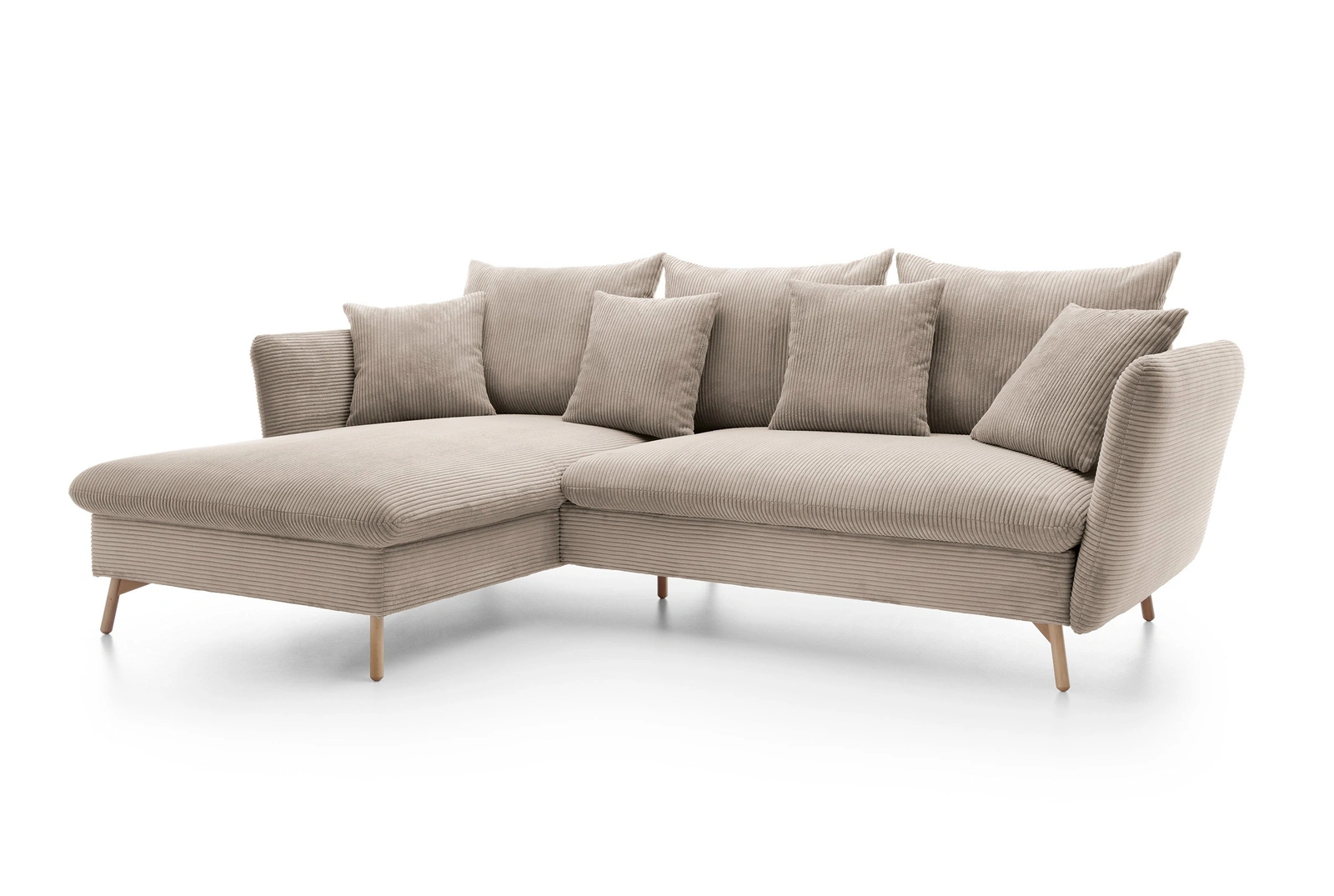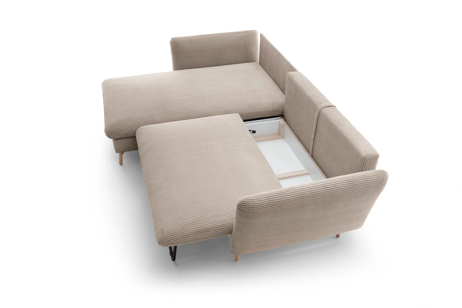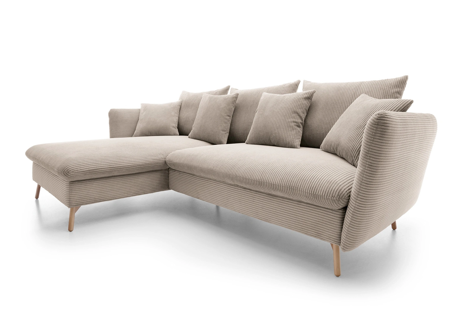 Narożnik MORRE lewostronny sztruks Poso 02 beżowy funkcja spania skandynawski