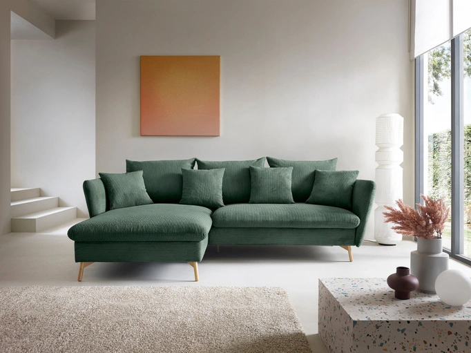 Narożnik MORRE lewostronny sztruks Poso 14 butelkowa zieleń funkcja spania skandynawski