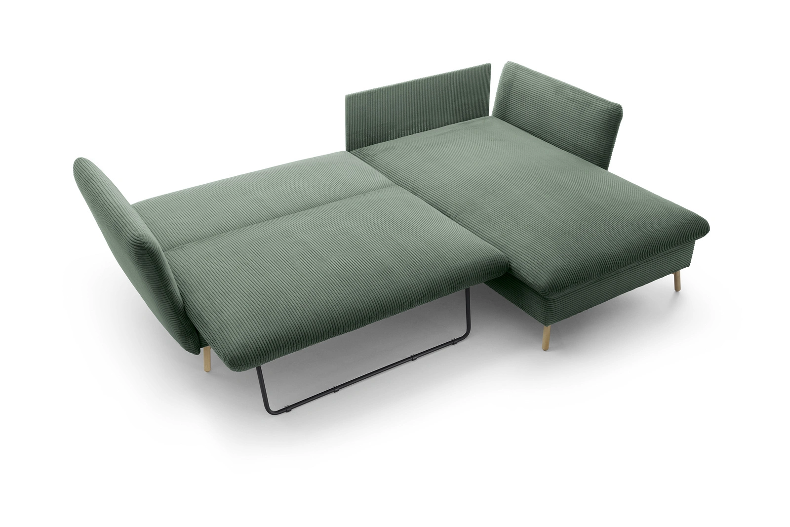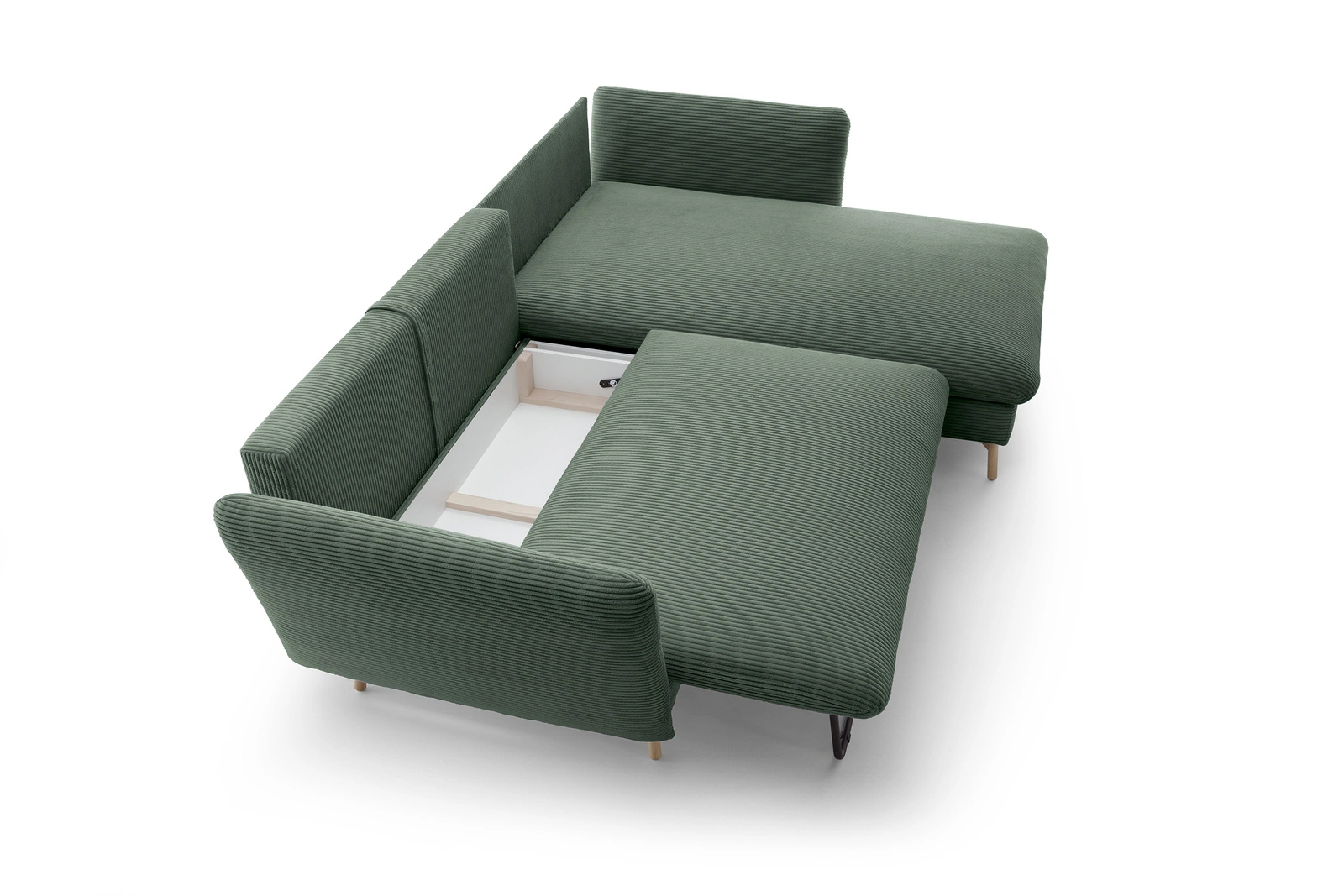 Narożnik MORRE prawostronny sztruks Poso 14 butelkowa zieleń funkcja spania skandynawski