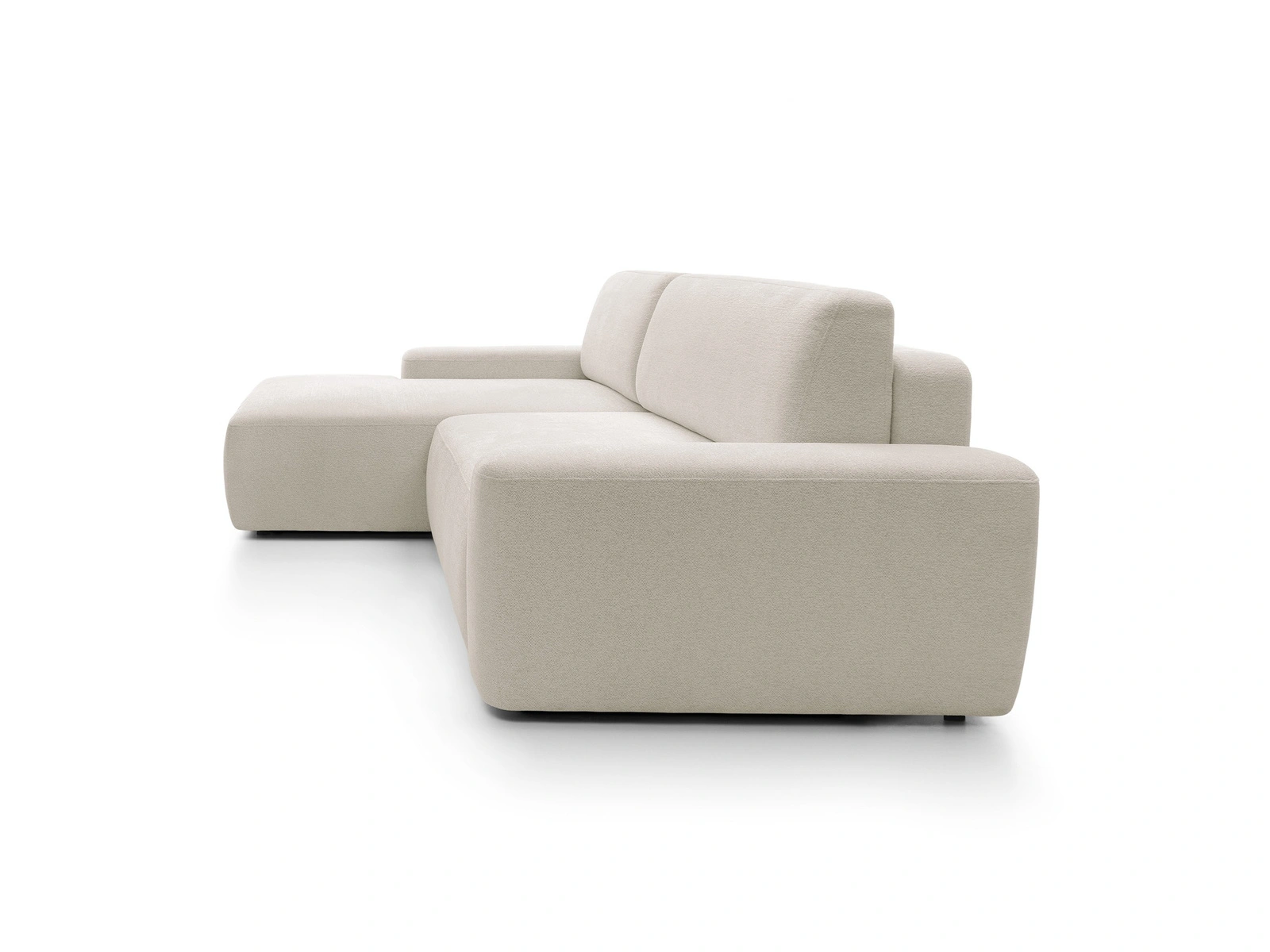 Szukasz mebla, który wprowadzi do Twojego domu ciepło i harmonię? Narożnik OLMI M w kolorze beżowym (Raven 24) to propozycja, która nigdy nie wychodzi z mody. Jego obła, niska bryła o szerokich podłokietnikach idealnie wpisuje się w styl "Soft", a jasny, piaskowy odcień tapicerki sprawia, że wnętrze staje się optycznie większe i bardziej przyjazne. Wersja lewostronna świetnie sprawdzi się jako serce rodzinnego salonu.