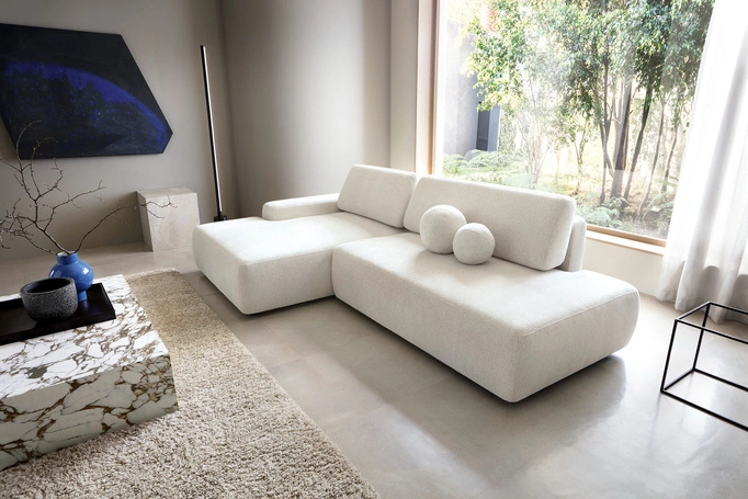 Marzysz o salonie pełnym światła i harmonii? Narożnik OLMI O w kolorze ecru (Raven 22) to mebel, który optycznie powiększa przestrzeń i dodaje jej lekkości. Jego niska, masywna bryła w stylu "Soft" została ubrana w jasną, kremową tapicerkę. Wersja lewostronna o szerokości 276 cm to idealne centrum rodzinnego relaksu, a dołączone do zestawu designerskie poduszki w kształcie kulek są stylowym dopełnieniem całości.