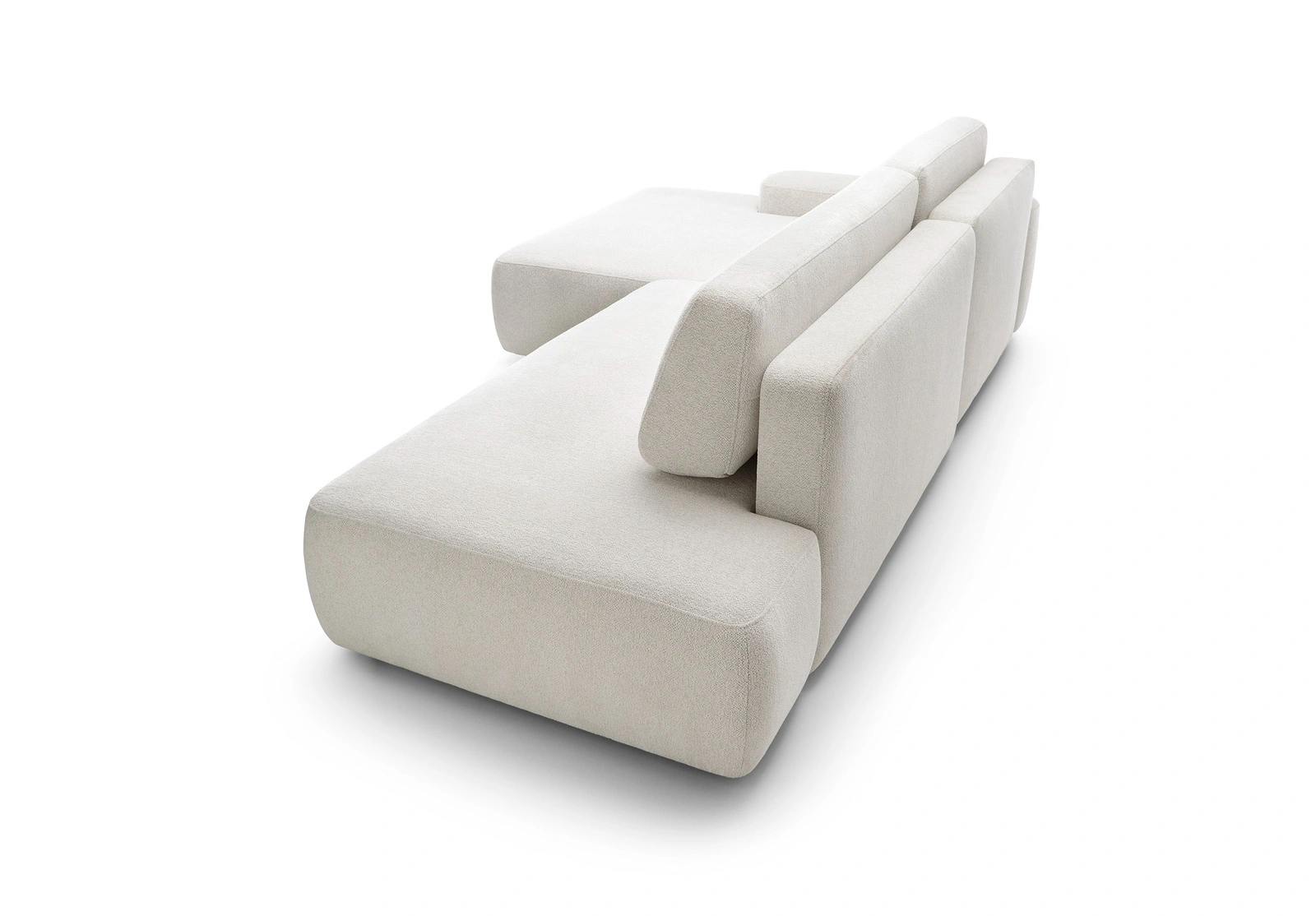 OLMI O to synonim komfortu. Imponująco szeroki szezlong pozwala na swobodne wypoczynek we dwoje, a głębokie, miękkie siedziska zapewniają błogi relaks po całym dniu.