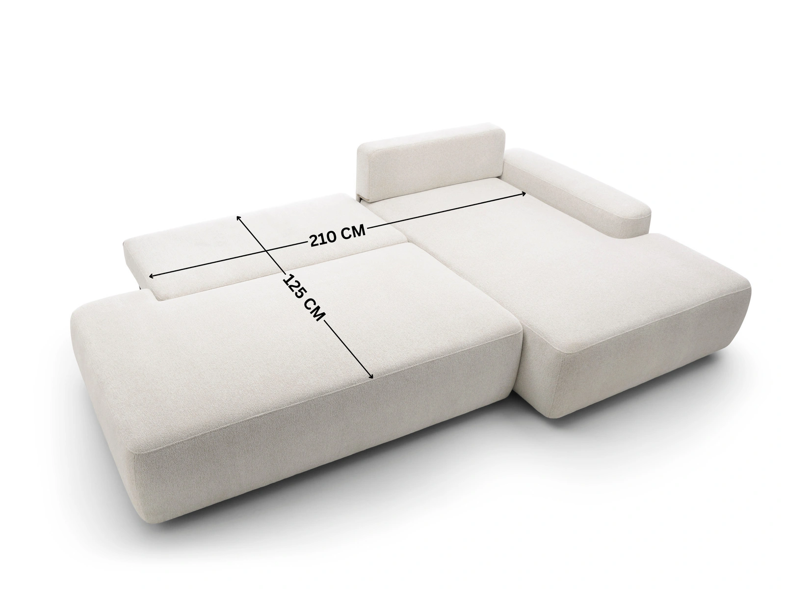 - Funkcja spania: Wysuwana część pozwala stworzyć powierzchnię spania o wymiarach 210 x 125 cm – idealną dla gości.
