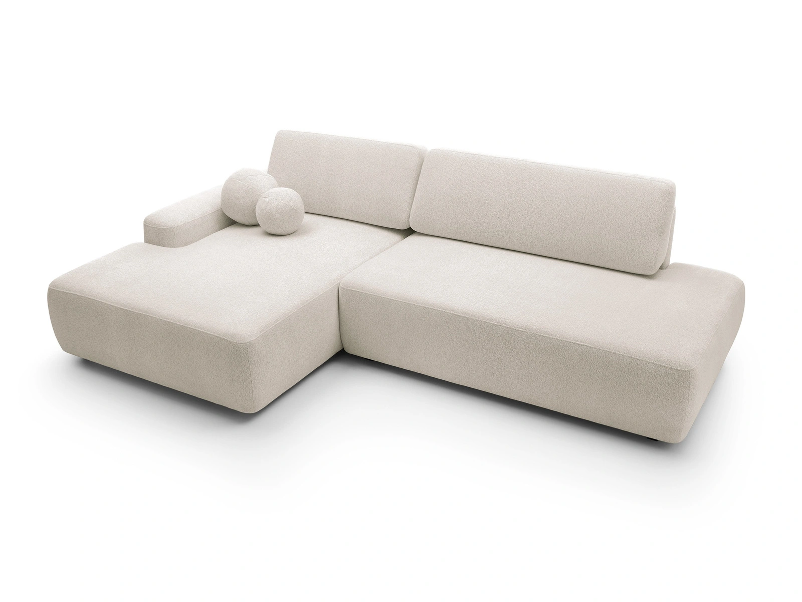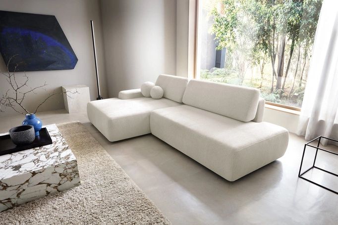 Szukasz mebla, który wprowadzi do Twojego domu ciepło i harmonię? Narożnik OLMI O w kolorze beżowym (Raven 24) to powiększona wersja naszego bestsellera, stworzona z myślą o przestronnych salonach. Jego obła, niska bryła w stylu "Soft" idealnie współgra z jasnym, piaskowym odcieniem tapicerki. Wersja lewostronna o szerokości 276 cm to serce domowego ogniska, a dołączone do zestawu poduszki w kształcie kulek dodają mu modnego, designerskiego sznytu.