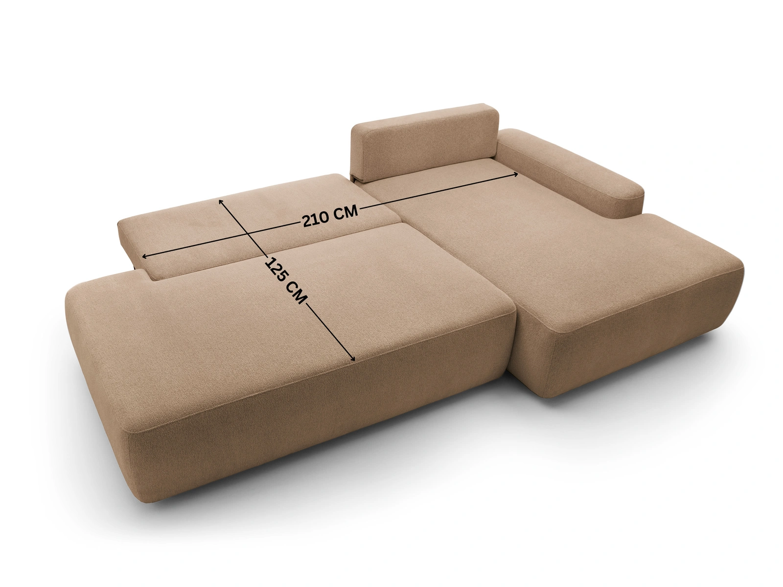 - Funkcja spania: Wysuwana część pozwala stworzyć powierzchnię spania o wymiarach 210 x 125 cm – idealną dla gości.