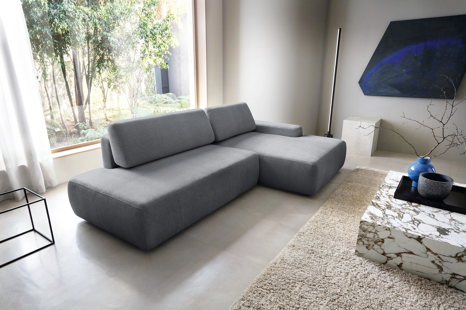- Mebel wolnostojący: Tył wykończony tkaniną pozwala ustawić narożnik na środku pokoju.