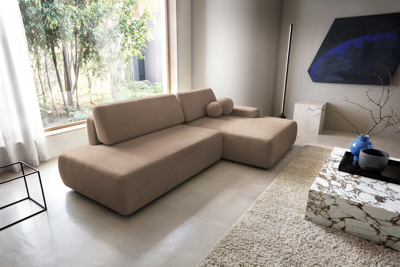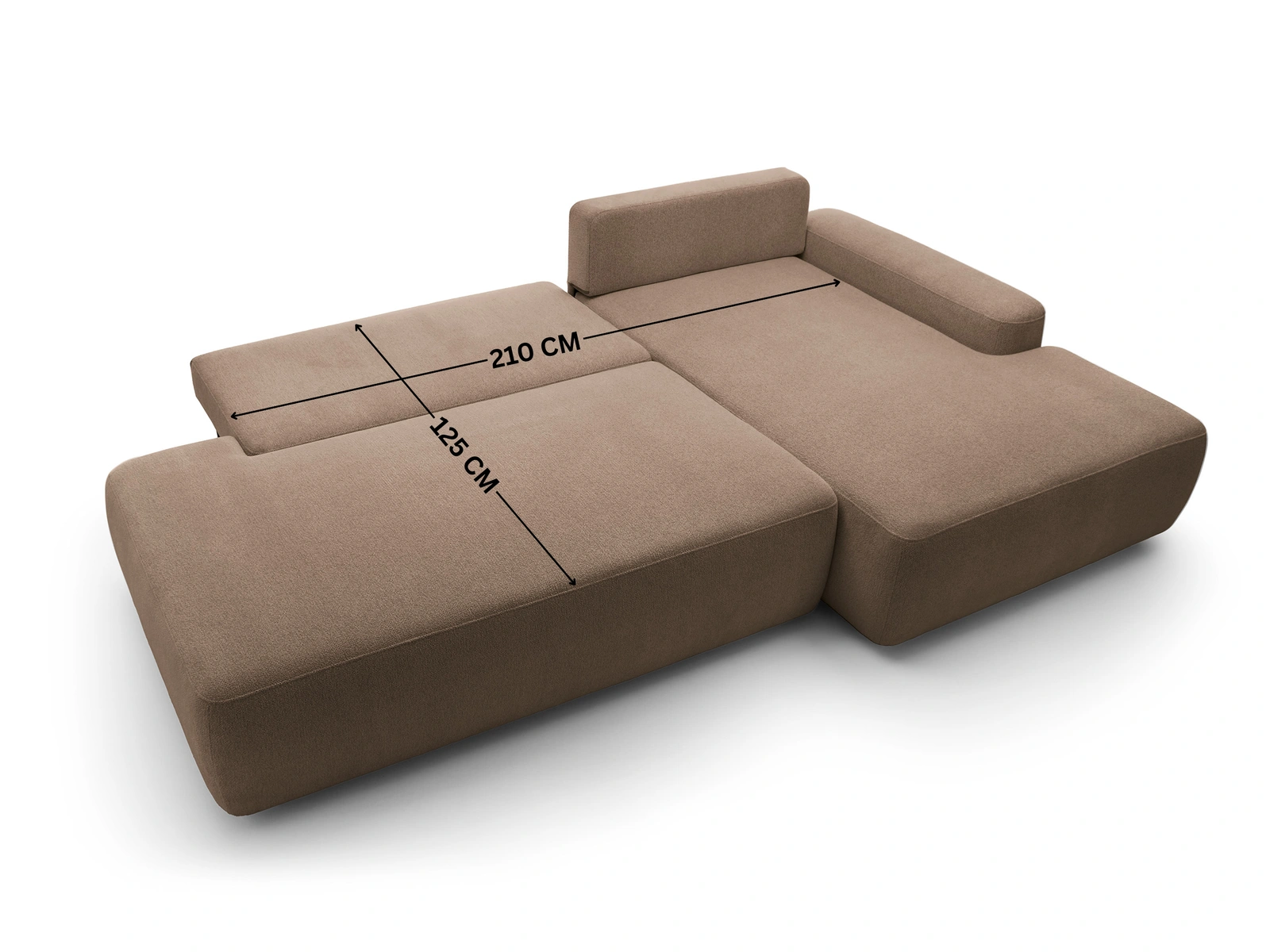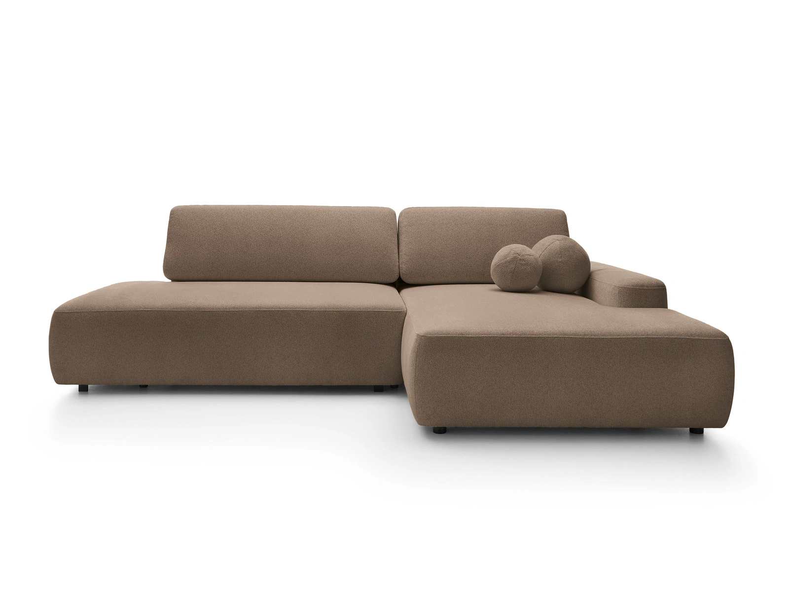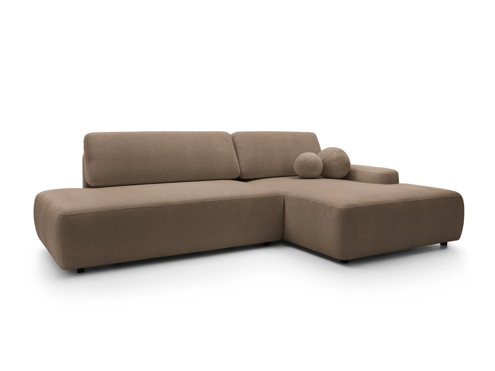 - Narożnik OLMI O (Raven 45, czekolada) to luksusowa elegancja w rozmiarze XXL. Szerokość 276 cm, szeroki szezlong i ozdobne poduszki kulki w zestawie. Posiada funkcję spania (210x125 cm) i pojemnik. Tkanina Raven 400g/m².