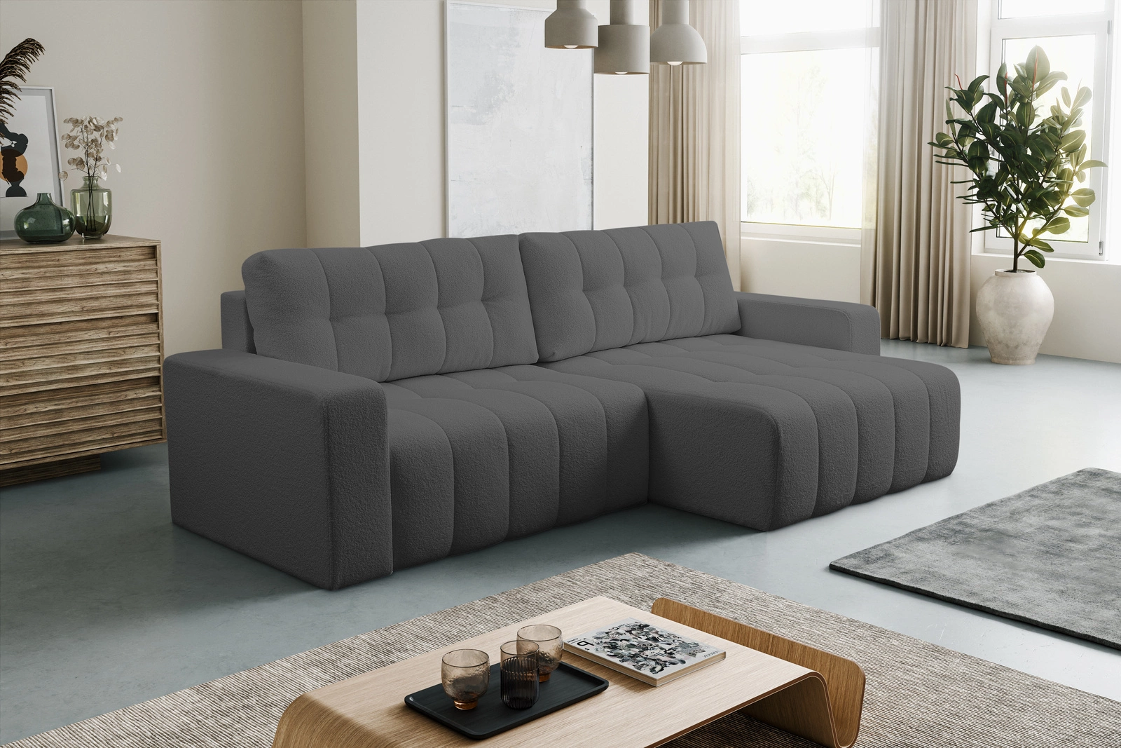 Narożnik Palermo w tkaninie BRAVO z funkcją spania i pojemnikiem na pościel