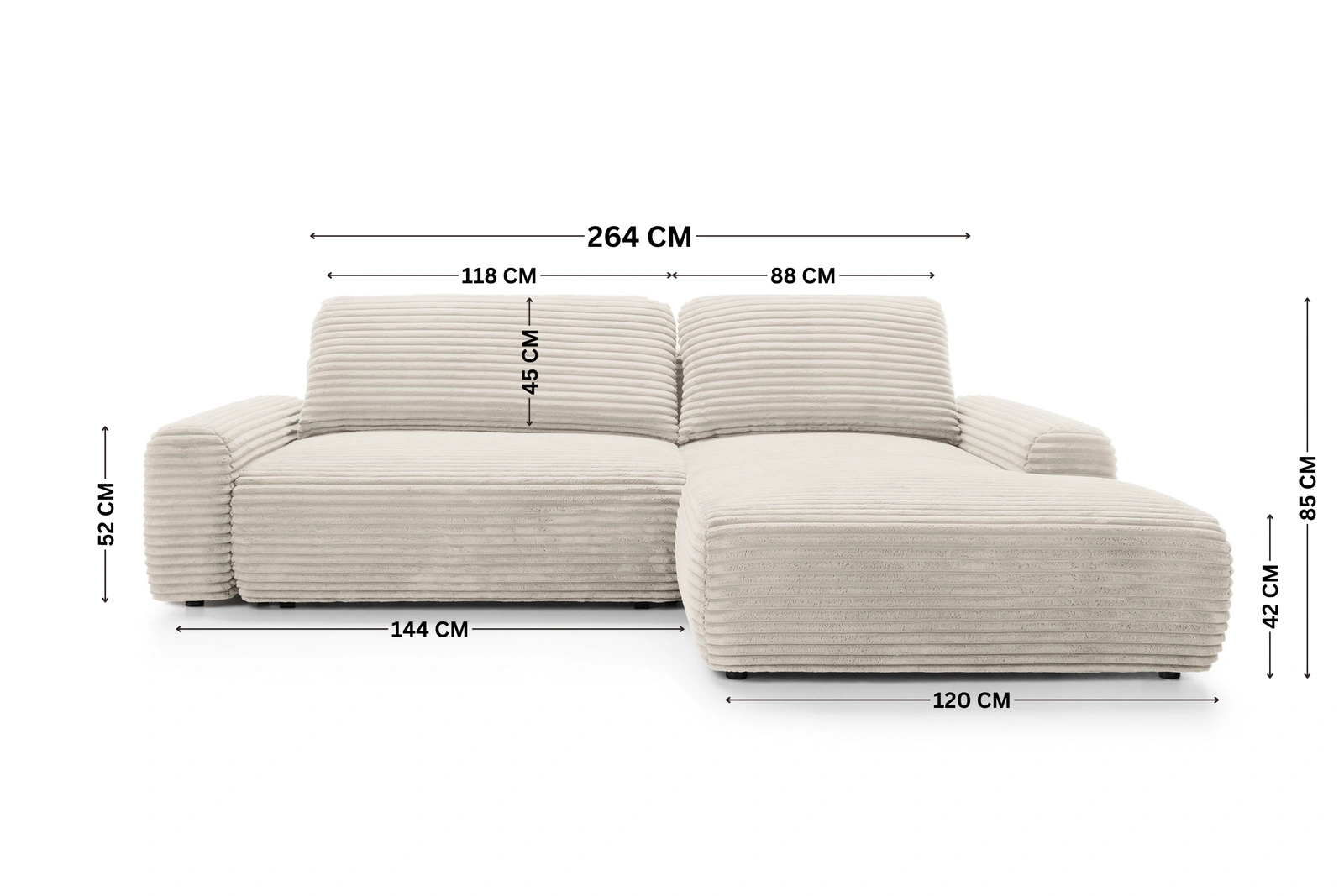 - Szerokość całkowita: 264 cm