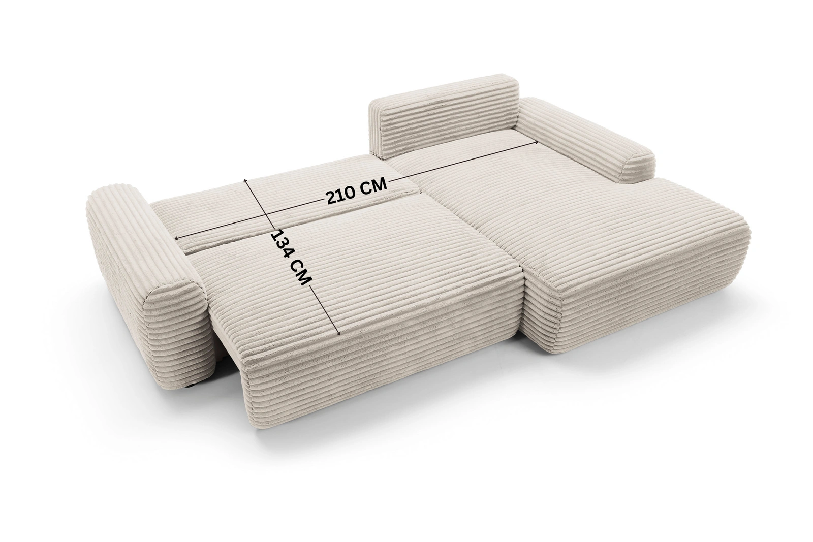 Narożnik sztruksowy z funkcją spania VIGO Ambience 02 Beżowy pojemnik