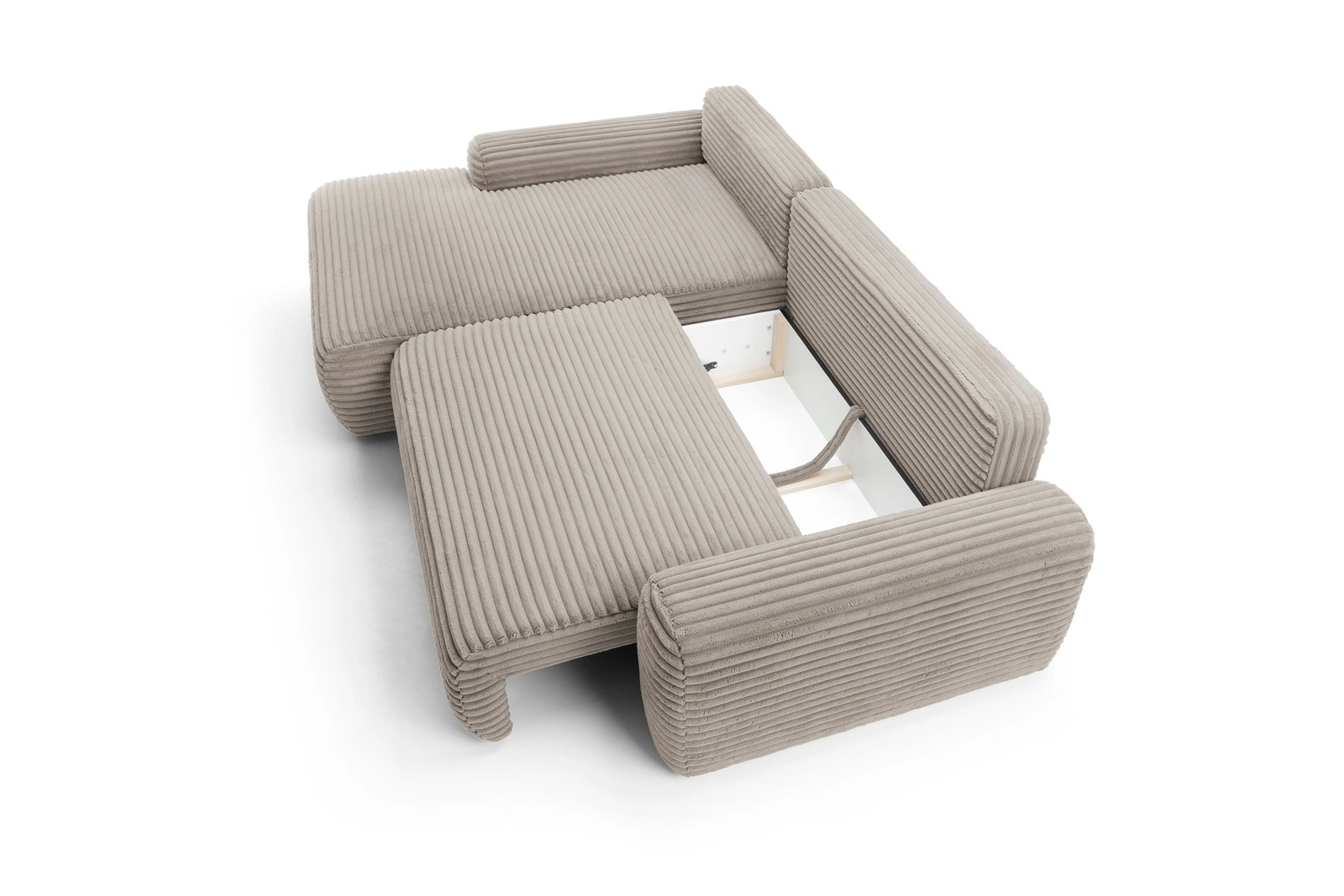 • Pojemnik na pościel: Ukryty schowek pod siedziskiem pozwala na sprytne przechowywanie pościeli i koców.