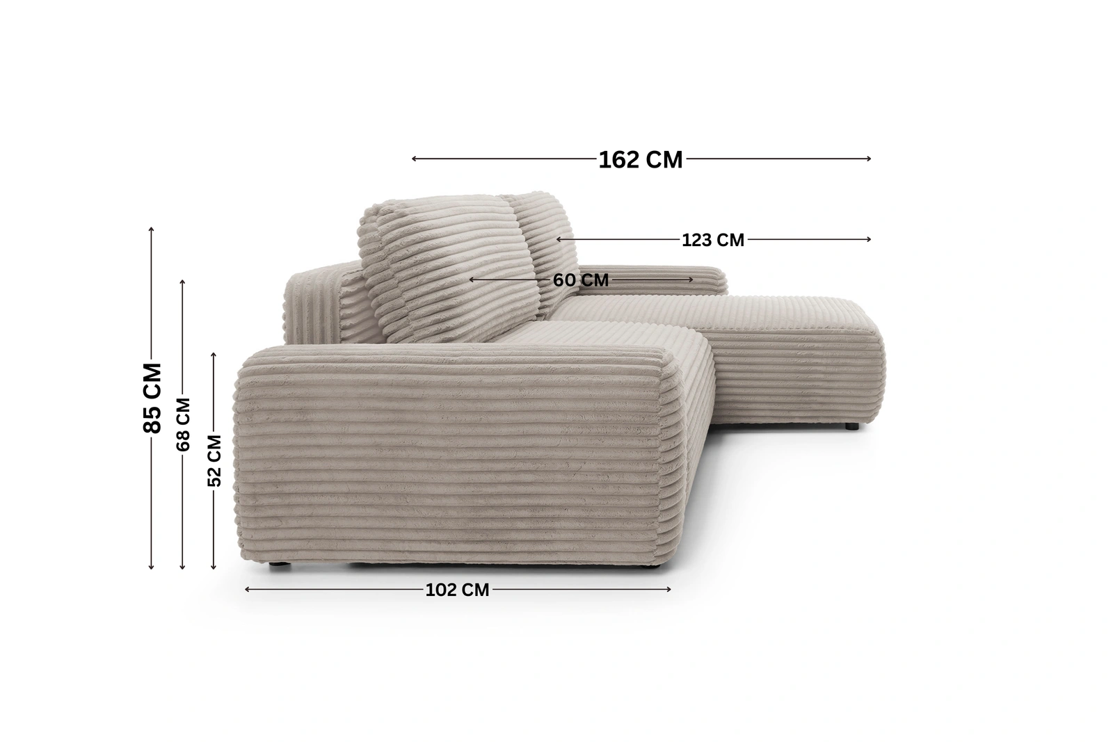 • Uwaga: Ze względu na specyfikę mebli tapicerowanych wymiary mogą się różnić o +/- 3 cm. Kolory tkanin na zdjęciach mogą nieznacznie różnić się od rzeczywistych w zależności od ustawień monitora.