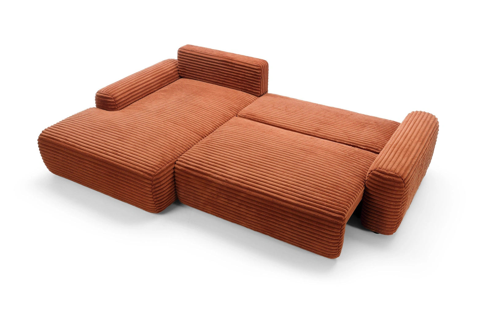 Narożnik sztruksowy z funkcją spania VIGO Ambience 09 Rudy Miedziany pojemnik